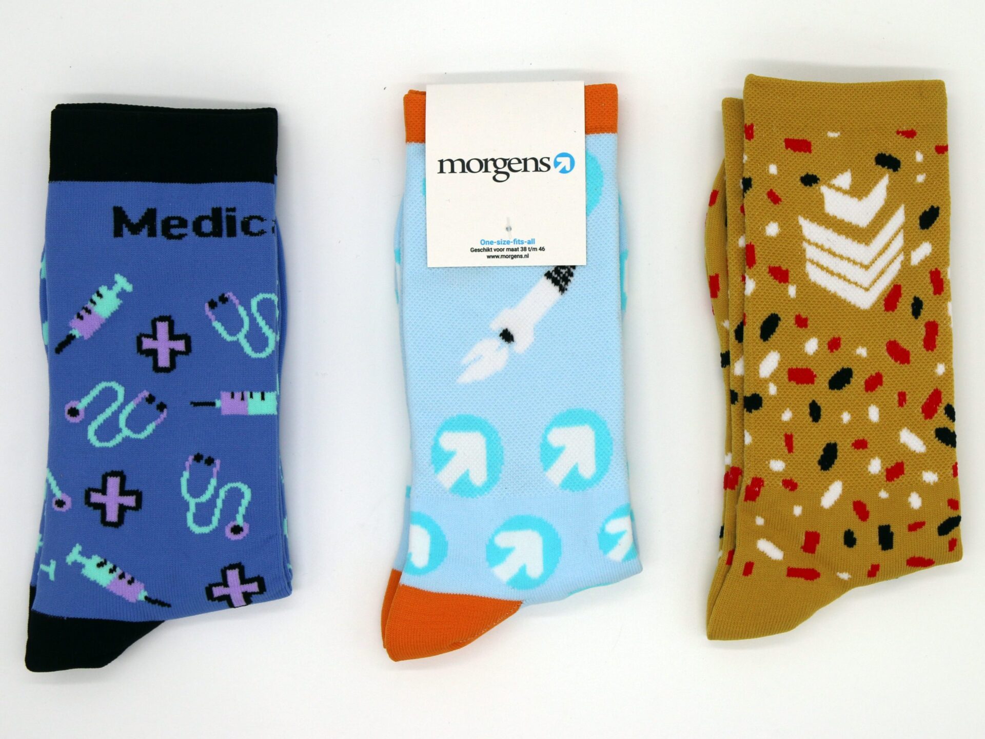 Our socks are machine knitted, the socks are built up layer by layer. It starts at the bottom and builds up layer by layer in up to 5 colors. Yarns are based on Pantone C samples. Tip: choose one background color and build the pattern/logo on it.