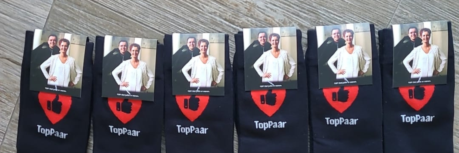 Bij Sokkies richten we ons voornamelijk op de zakelijke markt, maar ook particuliere klanten zijn van harte welkom. Zo kregen we onlangs een mooie aanvraag van een stel dat hun 25-jarig huwelijk vierde en hun gasten iets unieks wilde meegeven: