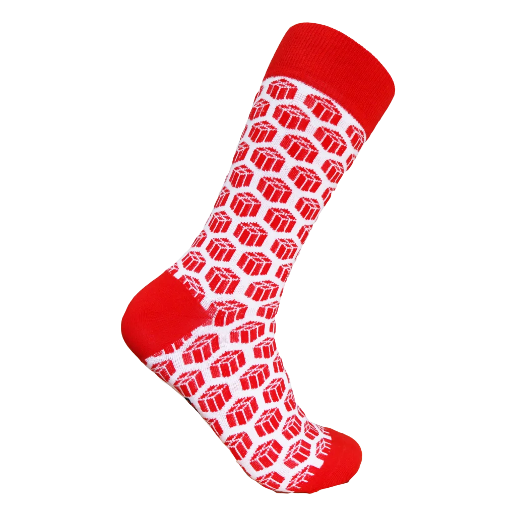 The hard workers at Muller Construction did deserve a present. In their Christmas package were beautiful work socks. The question from Muller Construction was simple: “Can you urgently print work socks for our staff?”